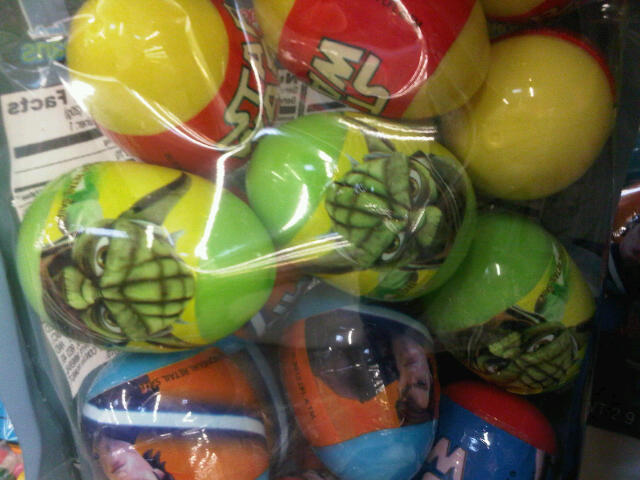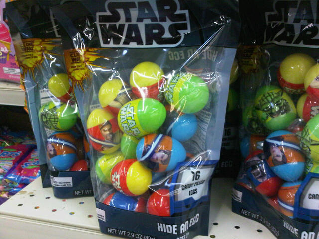 Now that Valentine’s Day is over it’s time for the stores to start stocking their Easter supplies, and that means that it’s time for me to start snapping photos of junk that none of us need . . . but the more hardcore of collectors want. These Star Wars eggs are just one of many things I’m seeing out there and while they’re okay, I have to say these eggs would be way cooler if tiny and random toys were hidden inside. Where, for example, are my Easter Egg Star Wars Fighter Pods toys (Amazon.com search*, available at Entertainment Earth*)?