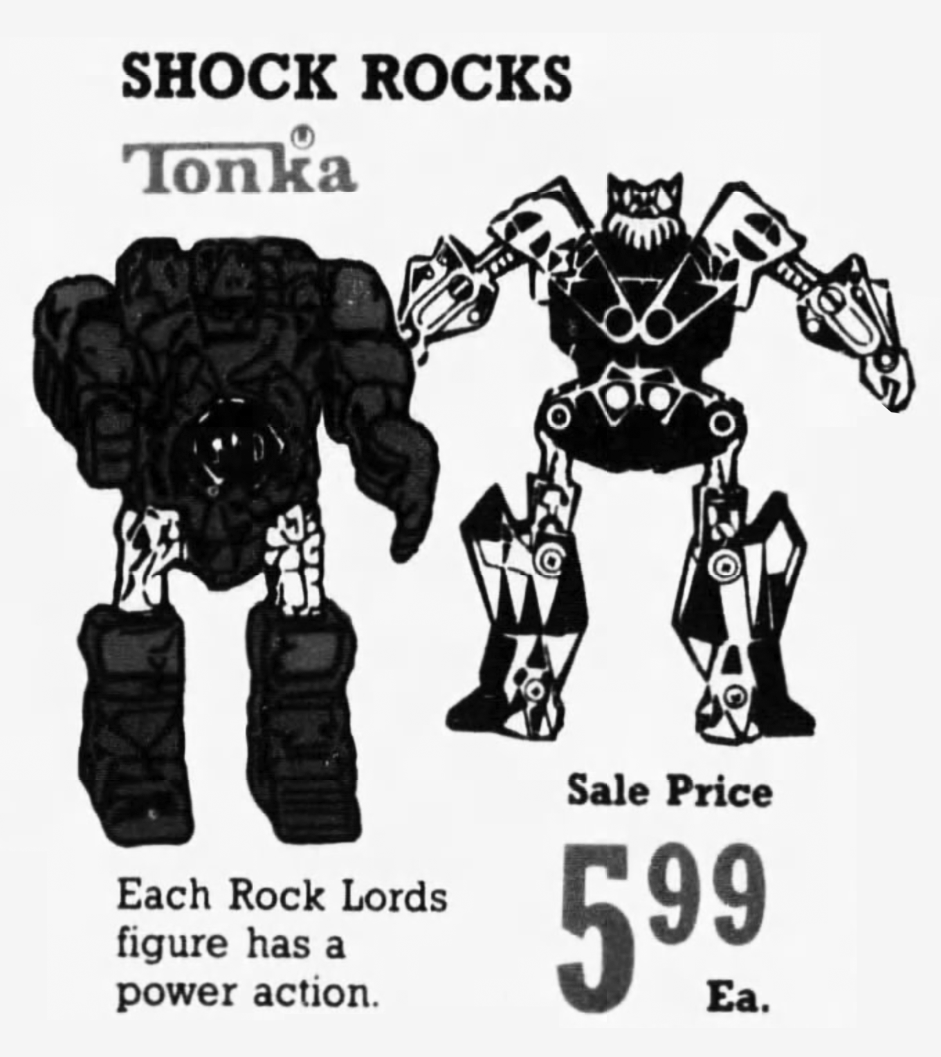May 20, 1987. An excellent KayBee Toys advertisement from the Baltimore Sun newspaper offers up this final gasp of the Tonka Rock Lords with the Shock Rocks on sale for $5.99/each. The transforming robot craze pretty much exhausted itself by mid-1986, with only Hasbro’s Transformers maintaining a strong retail presence after so many different lines of cheap transforming robot toys tried — and failed! — to claim market share. Sorry, Rock Lords, but your gimmick wasn’t enough to win that war.