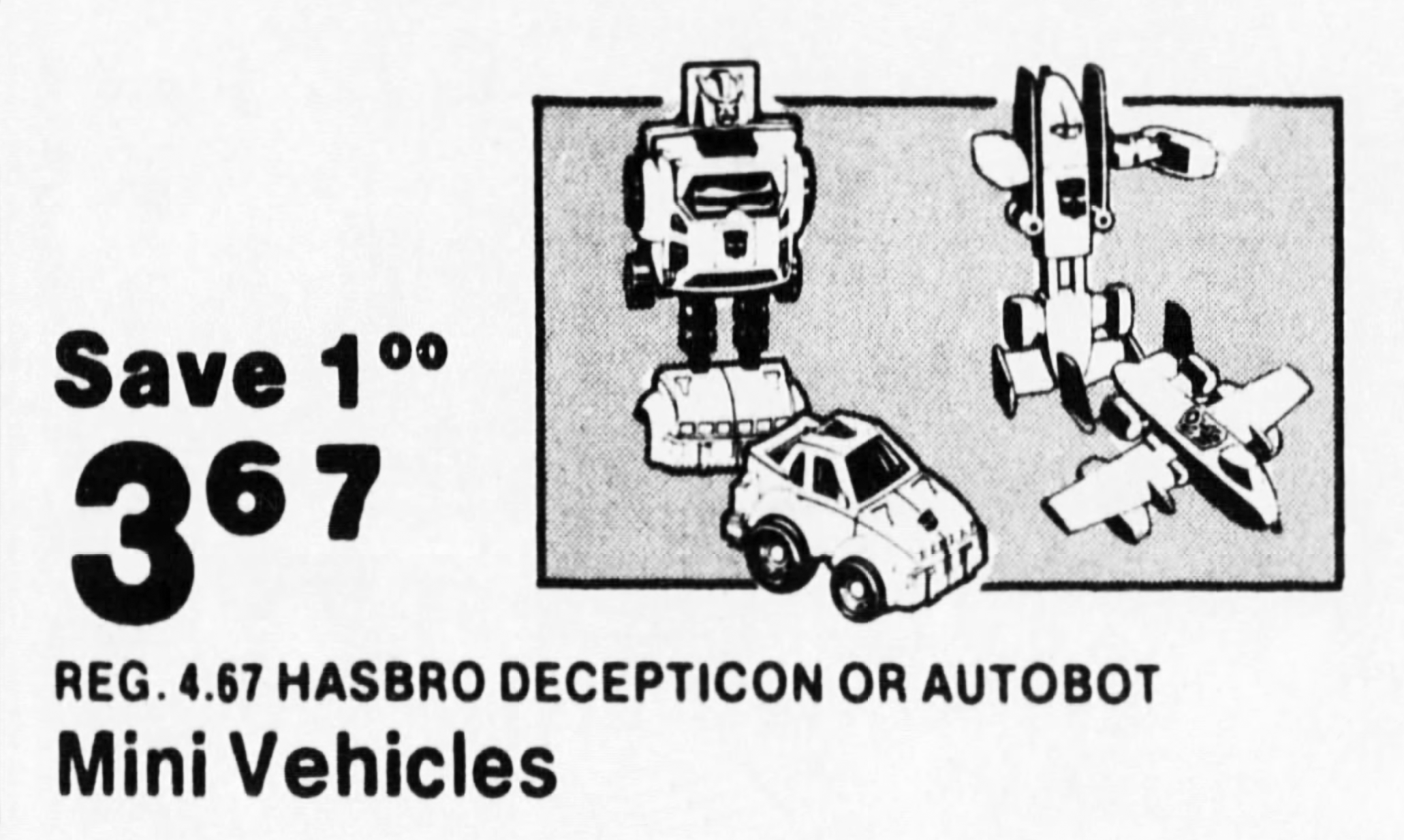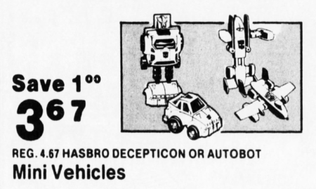 Transformers Mini Vehicles at “Click Family Stores” in 1987