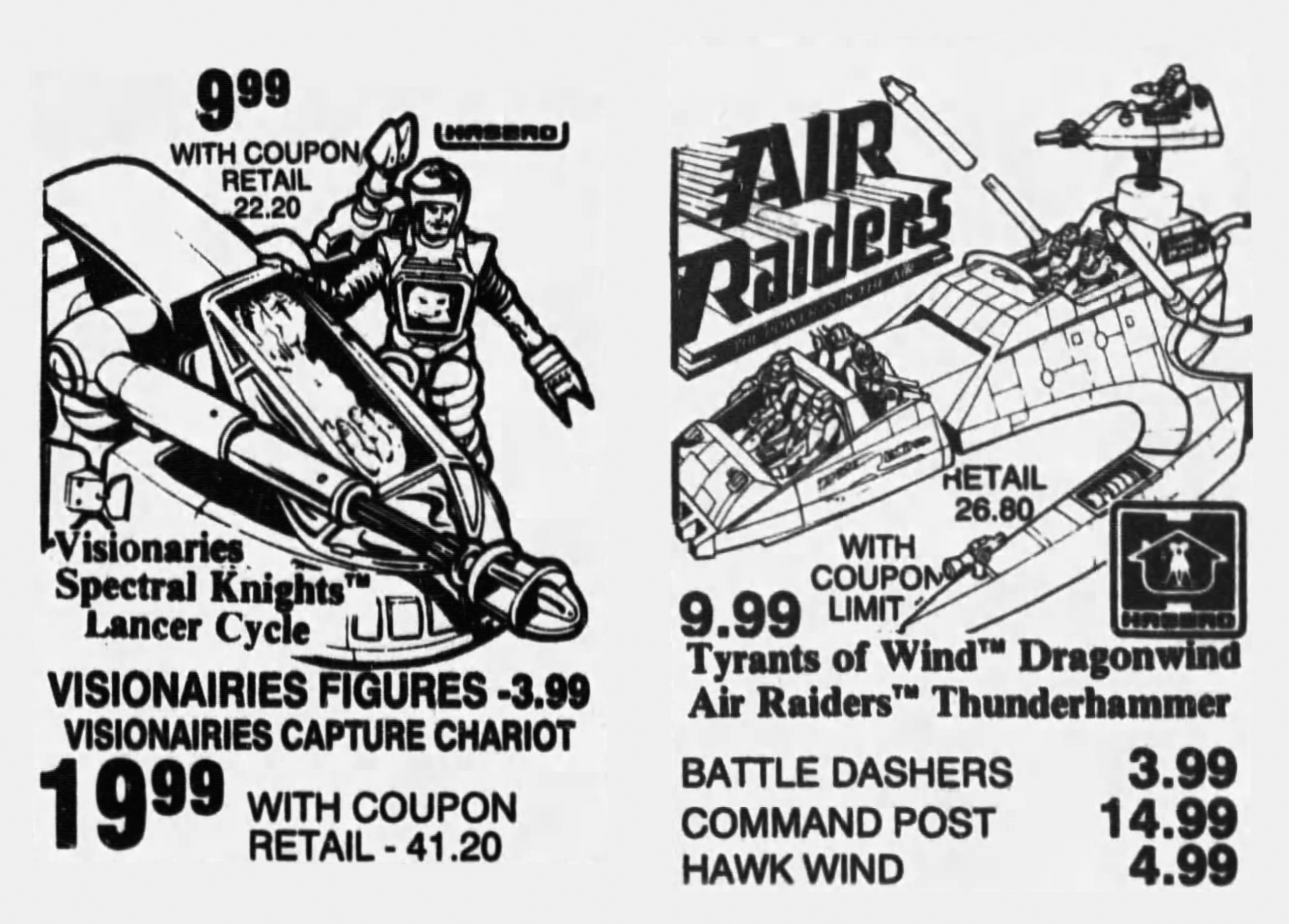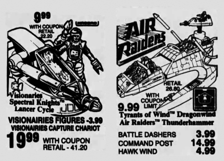Advertisements Visionaries and Air Raiders at Cut Rate Toys in 1987 Philip Reed May 4, 2018 November 29, 1987. While I’ve decided to focus on the Visionaries and Air Raiders toys featured in this Chicago Tribune newspaper ad, please be sure to click through because there are several other brands represented in the ad. Enlarge Image! Enlarge Image! Post navigation Previous: Transformers Throttlebots $2.88/each in 1987Next: Transformers Autobot and Decepticon Clones More Stories Advertisements 1981 Takara Pencil Shops Philip Reed May 11, 2019 Advertisements Kenner’s Steve Scout on Sale in 1974 Philip Reed May 7, 2019 Advertisements Dungeons & Dragons “We Have Dungeons & Dragons” at Hobby Town in 1977 Philip Reed May 5, 2019
